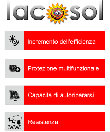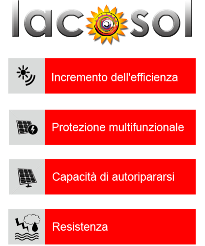 Questa soluzione innovativa protegge perfettamente i moduli solari. La sua resistenza a condizioni estreme ne consente l'utilizzo anche in ambienti desertici. Caratteristiche come la capacità di autoripararsi, il percettibile incremento dell'efficienza e la protezione ad alto livello lo rendono un prodotto totale.